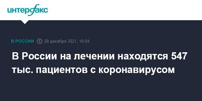 Москва. 28 декабря. INTERFAX.RU - В России в настоящее время на лечении находятся 547 тыс. пациентов с коронавирусом, сообщил глава Минздрава Михаил Мурашко.