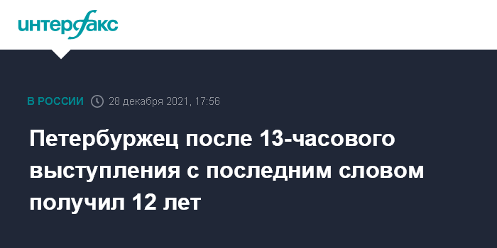 Петербуржец после 13-часового выступления с последним словом получил 12 лет