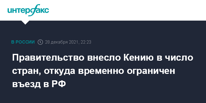 Россия с 19 декабря ограничила въезд для иностранцев, которые проживают в Кении или провели в этой стране более двух недель. Ограничения также касаются иностранных граждан, находящихся в Кении в течение последних 14 дней.