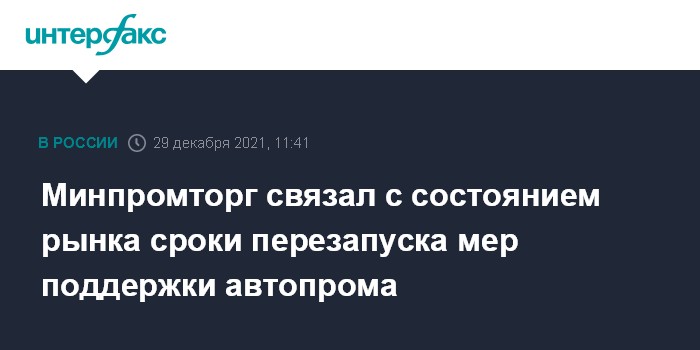 Москва. 29 декабря. INTERFAX.RU - Минпромторг заложил на 2022 год около 20 млрд рублей на программы стимулирования спроса в автопроме, но решение о сроках их перезапуска будет приниматься в зависимости от состояния рынка и ситуации с дефицитом машин у дилеров, сообщил журналистам глава министерства Денис Мантуров.