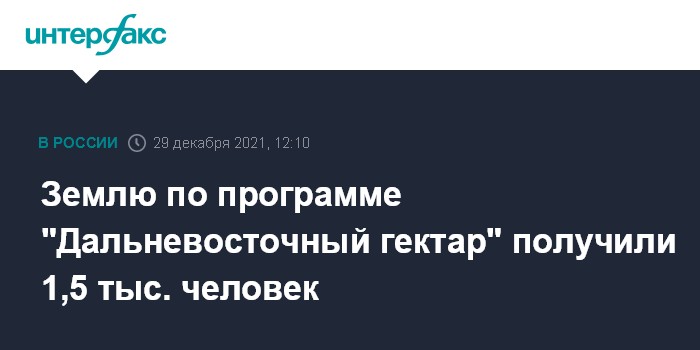 "Сегодня "Дальневосточный гектар" получили 98,7 тыс. человек. Совсем приближаемся к цифре 100 тысяч. Полторы тысячи уже прошли необходимый период освоения и получили гектар в собственность - 1554 человека, насколько я помню", - сказал Трутнев в среду в интервью телеканалу "Россия 24" ).