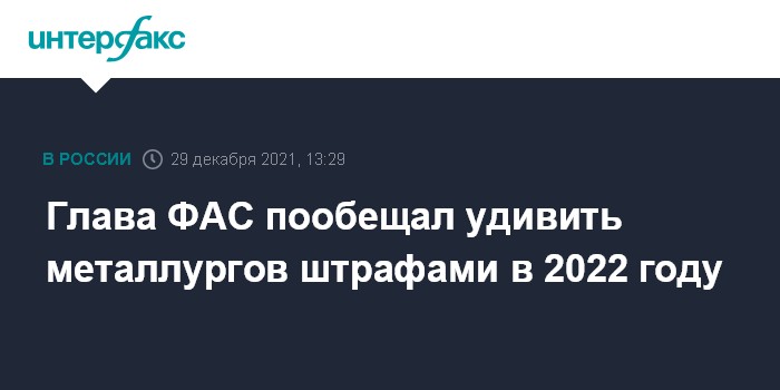 Глава ФАС пообещал удивить металлургов штрафами в 2022 году