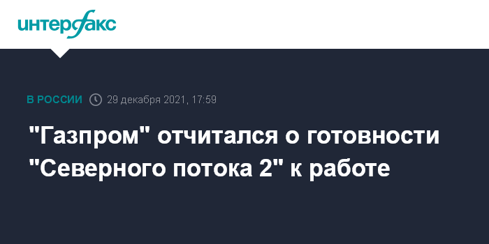 "Газпром" отчитался о готовности "Северного потока 2" к работе
