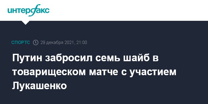 Лидеры государств играли за одну команду - белых - и одолели красных со счетом 18:7. Счет на 3-й минуте первого периода открыл российский президент, вторую шайбу в ворота соперника забросил Лукашенко. По итогу матча на счету Путина семь голов, у Лукашенко - два.