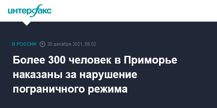 Москва. 30 декабря. INTERFAX.RU - Правила пограничного режима в Приморье в 2021 году нарушили более трех сотен человек, сообщила в четверг пресс-группа Пограничного управления СБ РФ по Приморскому краю.