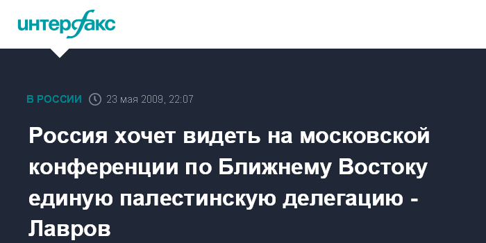 Россия хочет видеть на московской конференции по Ближнему Востоку единую палестинскую делегацию - Лавров