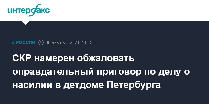 Москва. 30 декабря. INTERFAX.RU - В СК РФ не согласны с решением суда в Петербурге оправдать пятерых фигурантов дела о многолетнем сексуальном насилии над воспитанниками детского дома, сообщает в четверг пресс-служба ведомства.