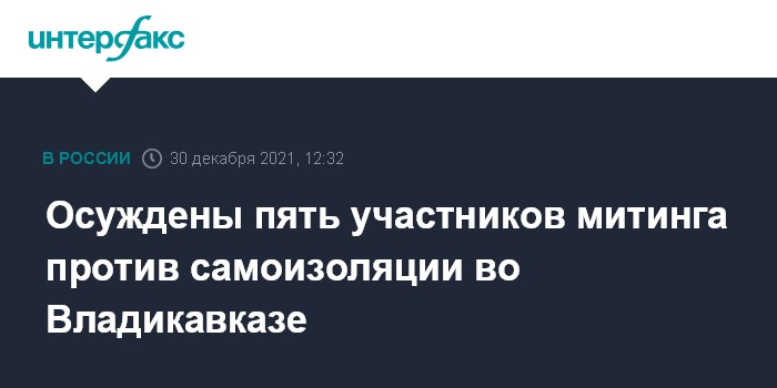 Москва. 30 декабря. INTERFAX.RU - Ворошиловский районный суд в Ростове-на-Дону приговорил пятерых участников несанкционированного митинга во Владикавказе весной 2020 года к различным срокам заключения, сообщает объединенная пресс-служба судов Ростовской области.