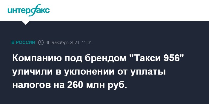 Компанию под брендом "Такси 956" уличили в уклонении от уплаты налогов на 260 млн руб.