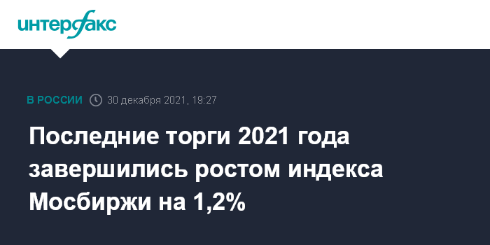 Последние торги 2021 года завершились ростом индекса Мосбиржи на 1,2%