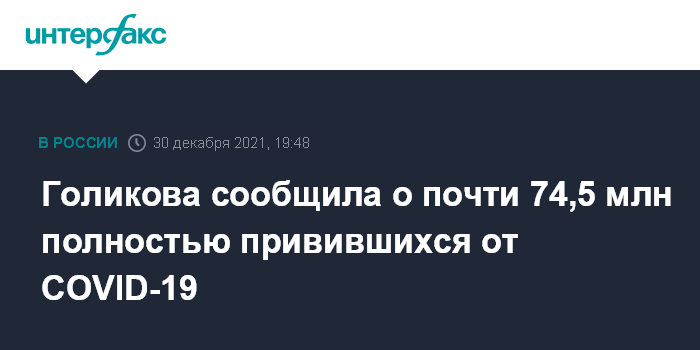 Голикова сообщила о почти 74,5 млн полностью привившихся от СOVID-19