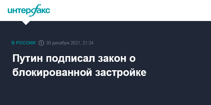 Москва. 30 декабря. INTERFAX.RU - Президент Владимир Путин подписал закон об уточнении статуса домов блокированной застройки и малоэтажном строительстве, который определяет статус новых категорий жилья - таунхаусов, дуплексов и других. Закон опубликован на официальном портале правовой информации, он вступит в силу в марте.