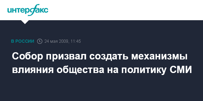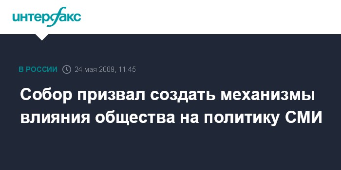 Москва. 24 мая. INTERFAX.RU - Общество должно иметь рычаги влияния на политику СМИ, считают участники XIII Всемирного русского народного собора, который завершился в эти выходные в Москве.