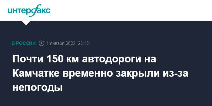 "По информации КГКУ "Камчатуправтодор", утром 2 января ограничено движение для всех видов транспорта на участке автодороги Мильково - Ключи - Усть-Камчатск. Так, закрыли участок с 267 по 408 километр на территории Усть-Камчатского муниципального района", - говорится в сообщении.