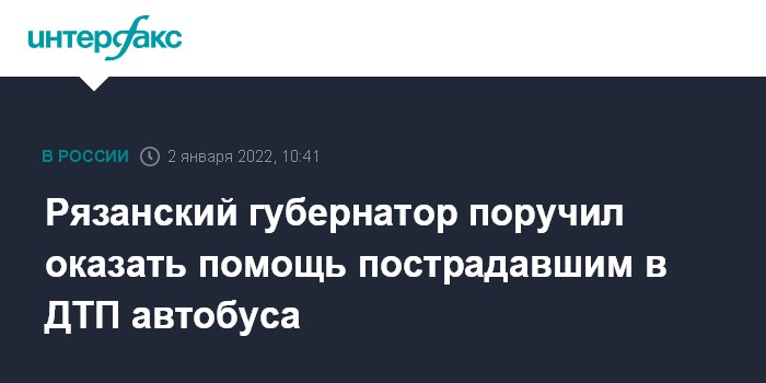 Москва. 2 января. INTERFAX.RU - Губернатор Рязанской области Николай Любимов поручил оказать всю необходимую помощь пострадавшим пассажирам рейсового автобуса Москва - Астрахань, попавшего в воскресенье утром в ДТП в Скопинском районе.