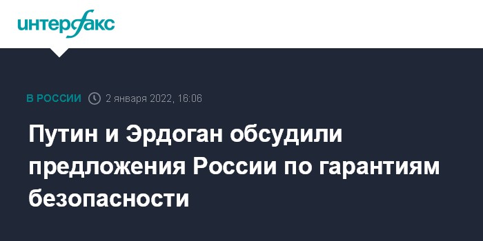 Путин и Эрдоган обсудили предложения России по гарантиям безопасности