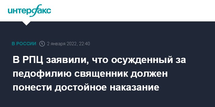 В РПЦ заявили, что осужденный за педофилию священник должен понести достойное наказание