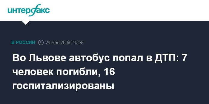 Киев. 24 мая. INTERFAX.RU - Около 7 часов утра в воскресенье во Львове на западной объездной дороге фура столкнулась с автобусом, перевозившим паломников.