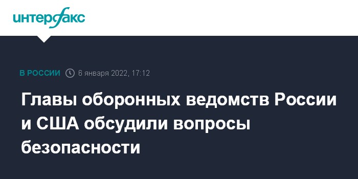 Москва. 6 января. INTERFAX.RU - Проведены телефонные переговоры министра обороны России генерала армии Сергея Шойгу и главы Пентагона Ллойда Джеймса Остина, сообщили в Минобороны РФ в четверг.