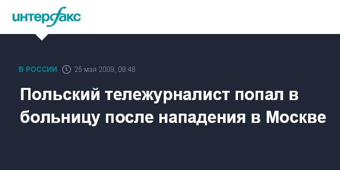 Москва. 25 мая. INTERFAX.RU - На юго-западе Москвы в воскресенье вечером злоумышленники напали на корреспондента польской телекомпании, аккредитованного в Москве, и избили его.