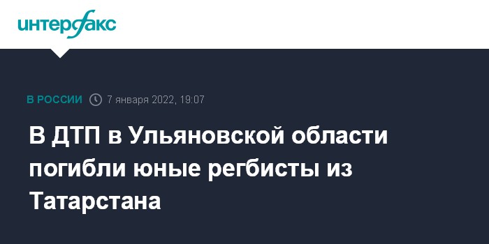 Москва. 7 января. INTERFAX.RU - В ДТП в Ульяновской области в ночь на 7 января погибли два юных спортсмена из казанского регби-клуба "Энергия", сообщила Федерация регби России. Также погибла мать одного из регбистов.
