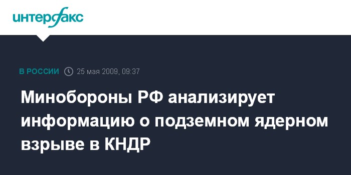 Москва. 25 мая. INTERFAX.RU - Российские военные зафиксировали подземное ядерное испытание на территории Северной Кореи, сообщили "Интерфаксу-АВН" в понедельник в Минобороны РФ.