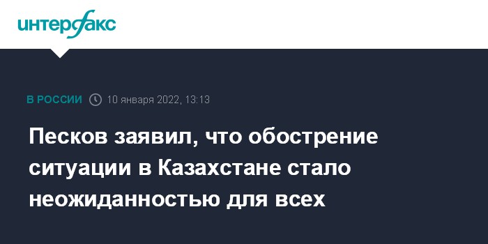 Песков заявил, что обострение ситуации в Казахстане стало неожиданностью для всех