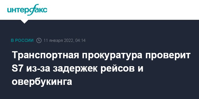 Москва. 11 января. INTERFAX.RU - Западно-Сибирская транспортная прокуратура проверяет деятельность АО "Авиакомпания "Сибирь" (S7 Airlines) по фактам систематических задержек авиарейсов и неоднократных отказов гражданам в авиаперевозках ввиду отсутствия свободных мест на борту (овербукинг).