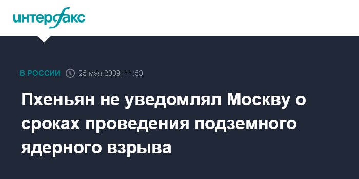 Москва. 25 мая. INTERFAX.RU - Северная Корея не информировала Россию по официальным каналам о намерении провести подземное ядерное испытание, заявил "Интерфаксу-АВН" в понедельник высокопоставленный военно-дипломатический источник в Москве.
