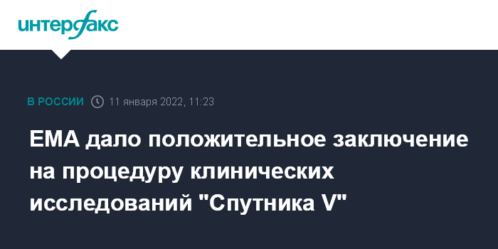 EMA дало положительное заключение на процедуру клинических исследований "Спутника V"