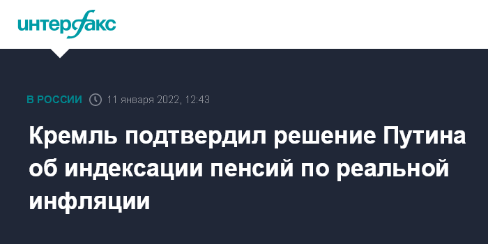 Пресс-секретарю был задан вопрос, касающийся слов президента о том, что правительство должно будет проиндексировать пенсии в 2022 году не ниже уровня инфляции. Журналист напомнил, что индексация произошла с 1 января на 5,9%, тогда как, по оценкам, фактическая инфляция может превысить 8%.
