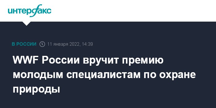 "Премия, учрежденная WWF России в 2019 году, призвана поощрить молодых специалистов, добившихся значительных результатов в сохранении видового разнообразия и природных ресурсов страны. Возраст соискателей не должен превышать 35 лет", - говорится в сообщении фонда во вторник.