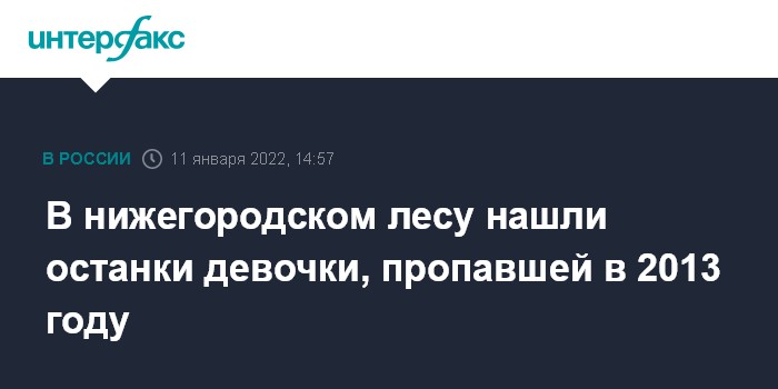 Москва. 11 января. INTERFAX.RU - Следственные органы в Нижегородской области возобновили расследование уголовного дела, возбужденного по факту исчезновения более семи лет назад 13-летней девочки.