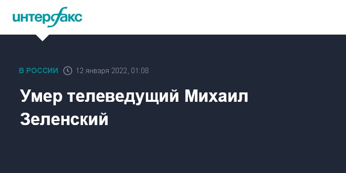 Москва. 12 января. INTERFAX.RU - Телеведущий и журналист Михаил Зеленский скончался в возрасте 46 лет, сообщил заместитель руководителя телеканала "Россия - Культура" Александр Ефимович в фейсбуке.