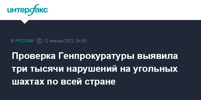Как сообщал "Интерфакс", после ноябрьского инцидента на шахте "Листвяжная", где жертвами стали более 50 человек, президент РФ Владимир Путин потребовал от Генпрокуратуры предоставить доклад о причинах аварии. В связи с этим генпрокурор Игорь Краснов заявил о планах провести масштабные проверки всех угольных шахт, находящихся в десяти угледобывающих регионах России.