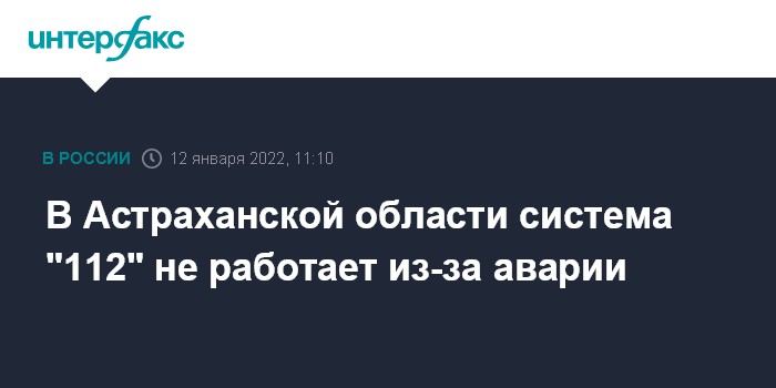 Москва. 12 января. INTERFAX.RU - В Астраханской области управление МЧС сообщило о возможных сбоях в работе системы связи с экстренными службами "112" "в связи с техническими неполадками". В поступившем в "Интерфакс" пресс-релизе говорится об "аварийной ситуации".