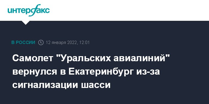 Москва. 12 января. INTERFAX.RU - Самолет авиакомпании "Уральские авиалинии" совершил посадку в аэропорту Екатеринбурга, куда вернулся из-за сработавшей после взлета сигнализации о неисправности, сообщил "Интерфаксу" информированный источник.