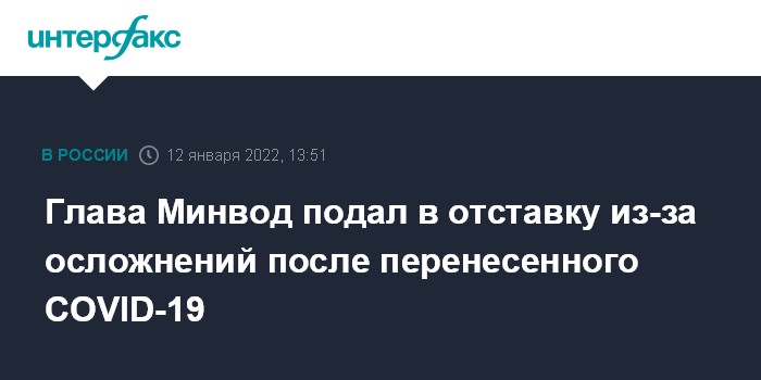 Глава Минвод подал в отставку из-за осложнений после перенесенного COVID-19