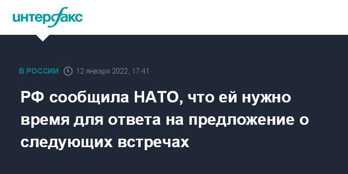 Москва. 12 января. INTERFAX.RU - Российская делегация сообщила НАТО, что ей потребуется время для ответа на предложения о формировании графика дальнейших встреч, заявил в среду генсек альянса Йенс Столтенберг.