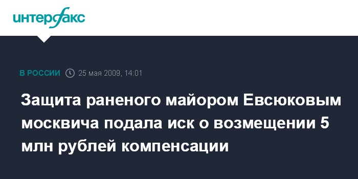 Защита раненого майором Евсюковым москвича подала иск о возмещении 5 млн рублей компенсации