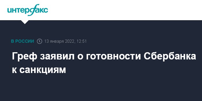 Москва. 13 января. INTERFAX.RU - Сбербанк не пугают новые возможные санкции, он готов ко всем вариантам развития событий, сказал журналистам президент - председатель правления банка Герман Греф в кулуарах Гайдаровского форума.