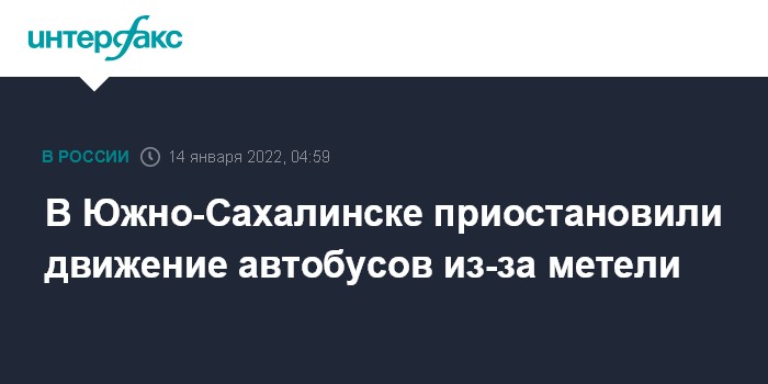 Москва. 14 января. INTERFAX.RU - Автобусное сообщение приостанавливается днем в пятницу в Южно-Сахалинске из-за метели, сообщает пресс-служба мэрии.