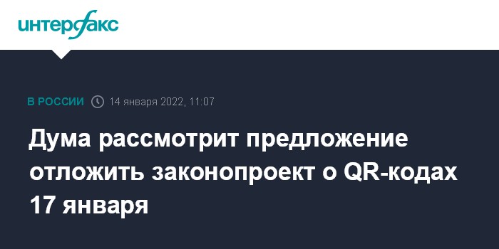 Дума рассмотрит предложение отложить законопроект о QR-кодах 17 января