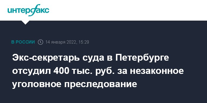 Экс-секретарь суда в Петербурге отсудил 400 тыс. руб. за незаконное уголовное преследование