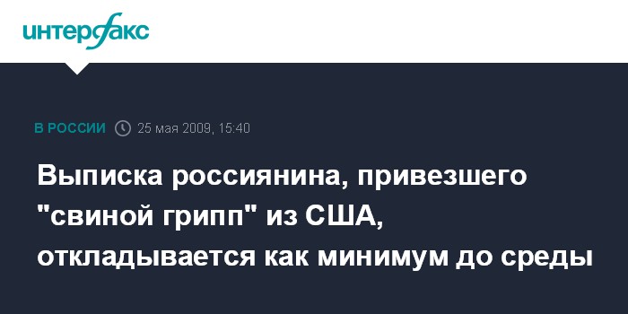 Выписка россиянина, привезшего "свиной грипп" из США, откладывается как минимум до среды