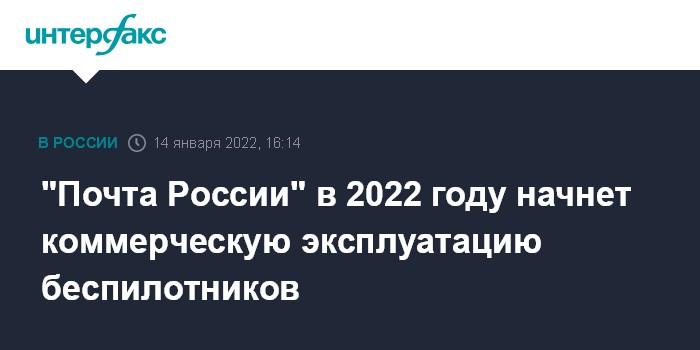 "2022 год станет для нас первым годом, когда мы несколько десятков тонн груза доставим уже в коммерческом режиме, не в режиме пилотирования. Мы в беспилотники верим, считаем, что это наше одно из магистральных направлений развития", - сказал гендиректор "Почты России".