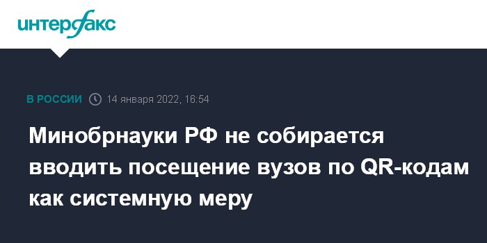 Минобрнауки РФ не собирается вводить посещение вузов по QR-кодам как системную меру