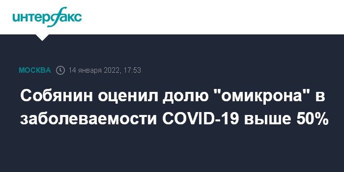 Москва. 14 января. INTERFAX.RU - Мэр Москвы Сергей Собянин считает, что сейчас можно уверенно говорить о том, что больше половины заболевших в Москве переносят "омикрон". Он сказал это телеканалу "Россия 1".