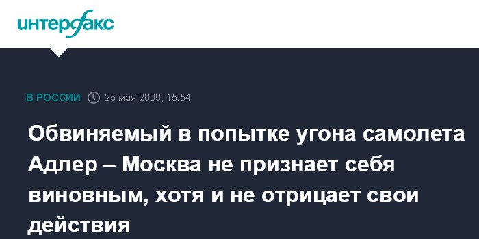 Москва. 25 мая. INTERFAX.RU - Житель Краснодарского края Олег Васянович, обвиняемый в попытке угона самолета рейса Адлер - Москва в октябре прошлого года, признал факт совершения инкриминируемых ему действий, но заявил, что не считает себя виновным.
