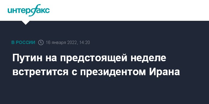 Москва. 16 января. INTERFAX.RU - Президент России Владимир Путин, как ожидается, на предстоящей неделе проведет переговоры с президентом Ирана Ибрахимом Раиси.